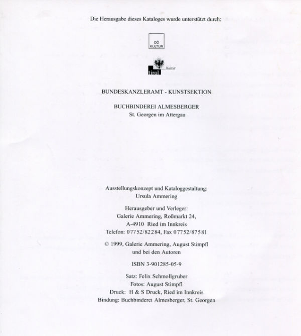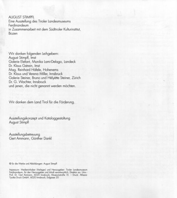 AUGUST STIMPFL Zum 70. Geburtstag des Künstlers Galerie Elisabeth & Klaus Thomann, Innsbruck 22.2.1994 – 2.4.1994